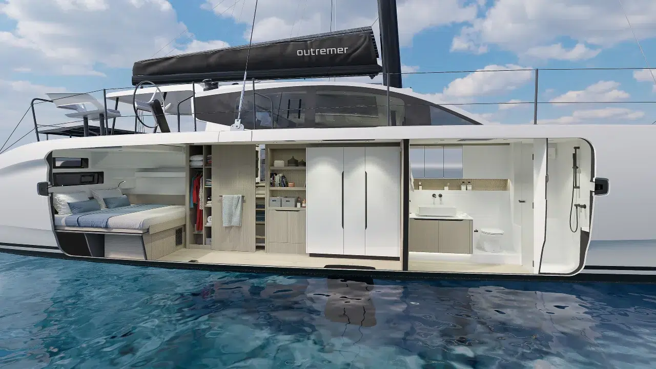 Der Outremer 57 hat eine einzigartige Präsenz auf dem Wasser: straffe Linien, kontrollierte Proportionen, keine Flybridge… Alles trägt zu einer schlanken, puristischen und zeitlosen Silhouette bei. Diese Ästhetik, die den Grundsätzen von Outremer treu bleibt, stellt Präzision über übertriebene Architektur. Das Ergebnis ist ein ikonischer Katamaran, der sofort erkennbar ist, mit Eleganz den Test der Zeit bestehen soll und die Erwartungen der anspruchsvollsten Segler erfüllt.