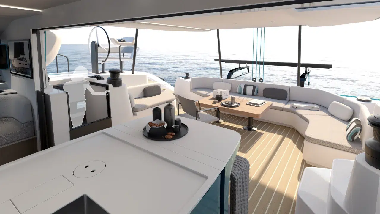 The Outremer 64 is the brand’s first model conceived to accommodate a professional crew without compromising the owner’s privacy. A separate skipper’s cabin, dedicated circulation areas and an overall architecture designed for shared living enable peaceful sailing, whether with family or with a skipper on board. With its capacity to accommodate up to 10 people and its fluid use of space, the Outremer 64 redefines the comfort of a luxury cruising catamaran… without compromising on Outremer’s simplicity.